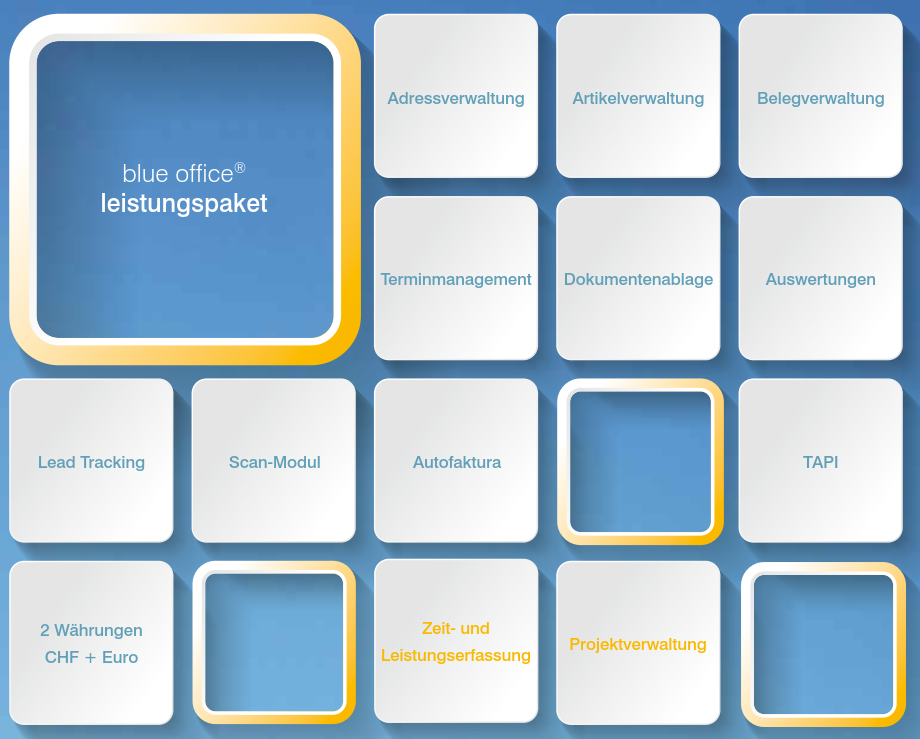 Das blue office® leistungspaket stellt die effiziente Gesamtlösung für alle Dienstleistungsbetriebe zu einem optimalen Kosten-Nutzen-Verhältnis dar.