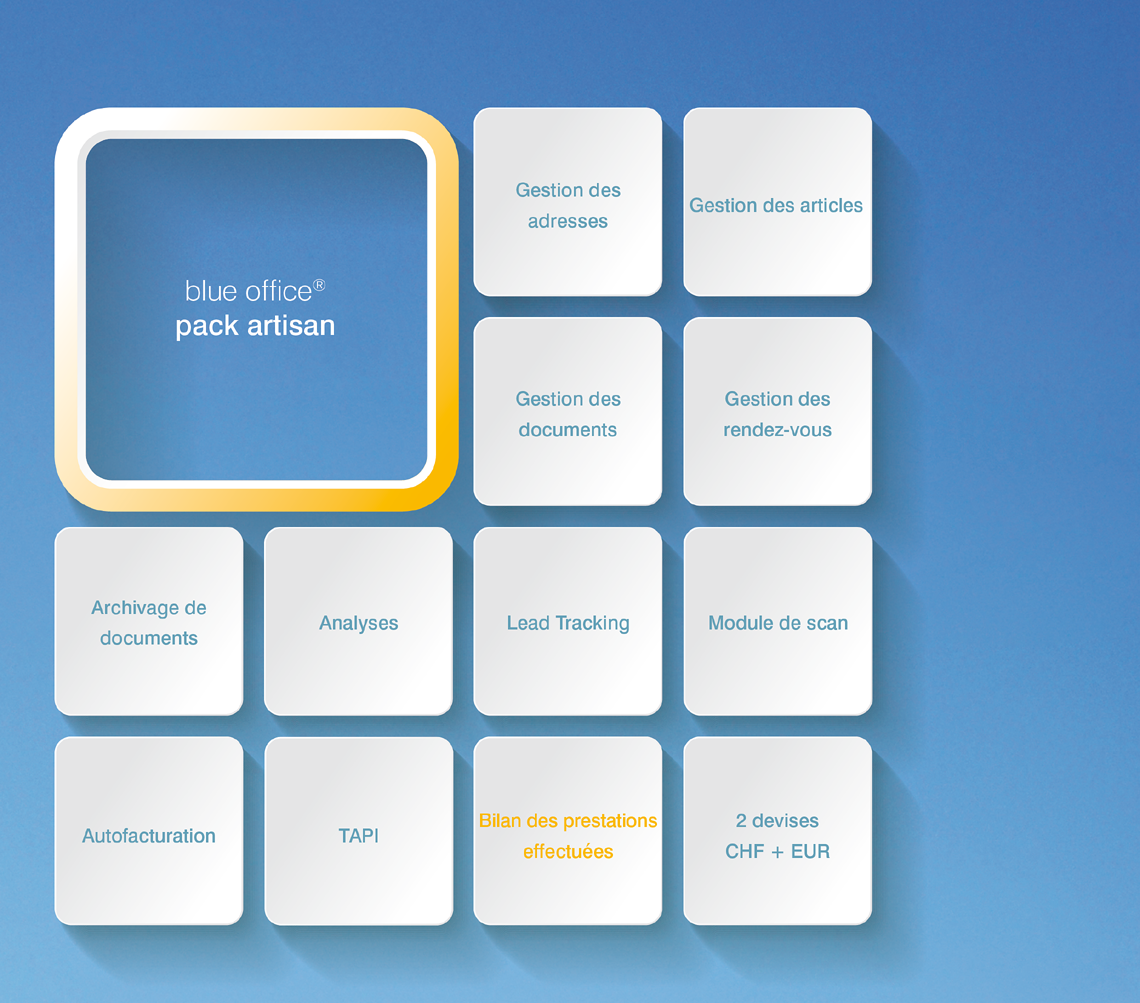 Le pack artisan blue office® peut être complété au besoin par d'autres modules supplémentaires.